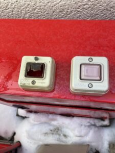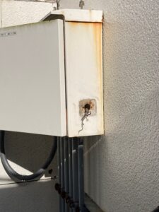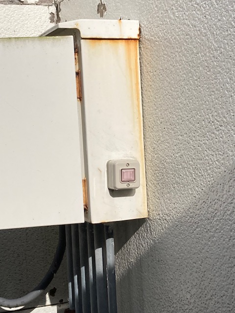 店舗様より屋外の分電盤に設置してある照明スイッチが腐食したとのことで修理に伺いました。